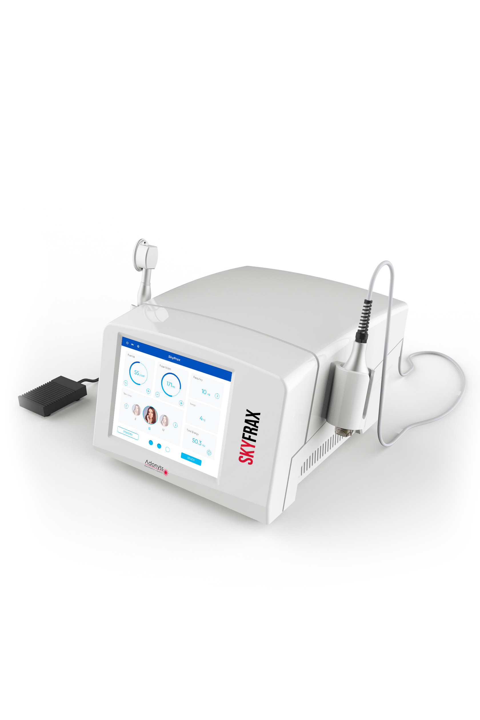 Аппарат Adonyss SkyFrax - это уникальная на рынке система с двумя функциями: микроигольчатого фракционного RF-лифтинга, а также крио и термо-терапии.